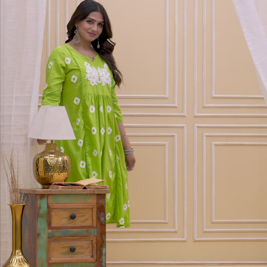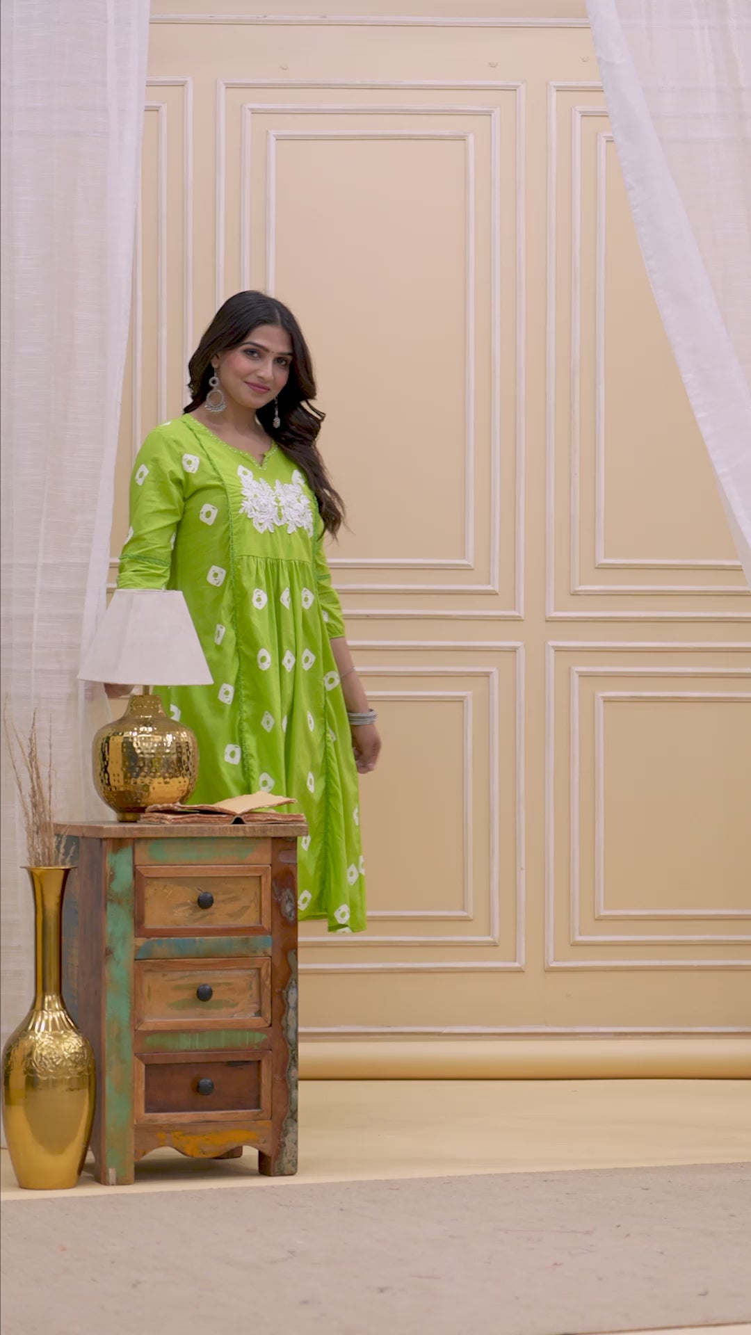 Refresh your ethnic wardrobe with this stunning lime green cotton kurta pant set, designed for women who love comfort with a touch of elegance. Crafted from soft, breathable cotton, this outfit features a beautifully flared A-line silhouette that enhances your natural shape while offering all-day comfort.