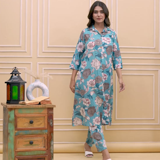 Refresh your everyday wardrobe with this beautiful Teal Blue Floral Printed Co-ord Set, designed for comfort, elegance, and effortless style.