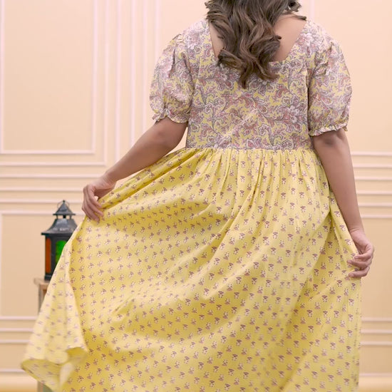 Add a fresh, vibrant charm to your wardrobe with this stunning yellow floral printed overlay kurta pant set, designed for women who love playful elegance with everyday comfort. This Indo-western fusion outfit features a beautiful blend of pastel paisley prints underneath and a flowy yellow overlay that adds graceful movement with every step.